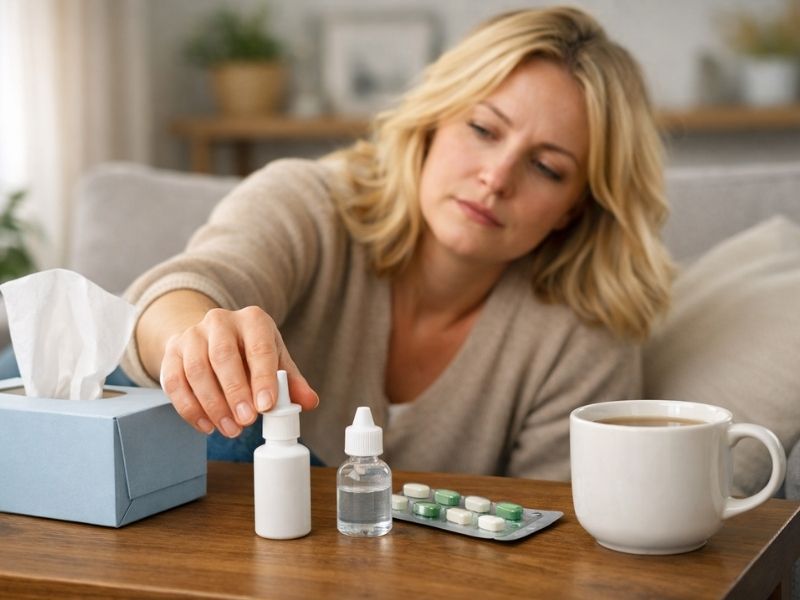 - Niesen und laufende Nase