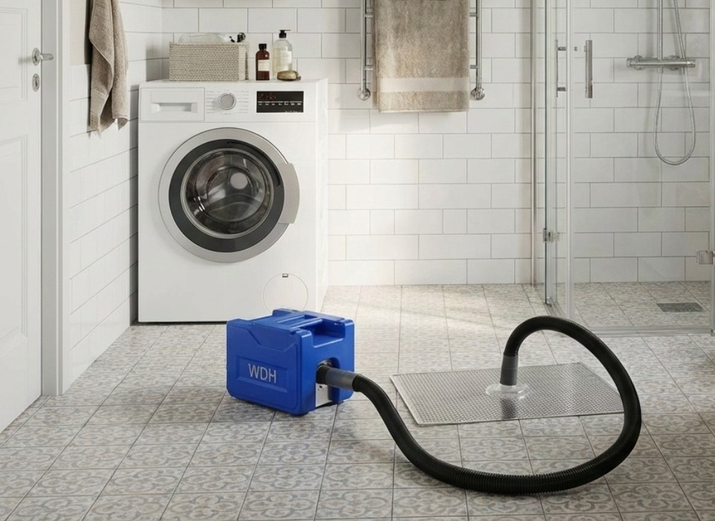 - Nicht-invasive Bautrocknung: Gezielte Feuchtigkeitsextraktion ohne kostspieliges Aufstemmen von Fliesen oder Bodenbelägen.